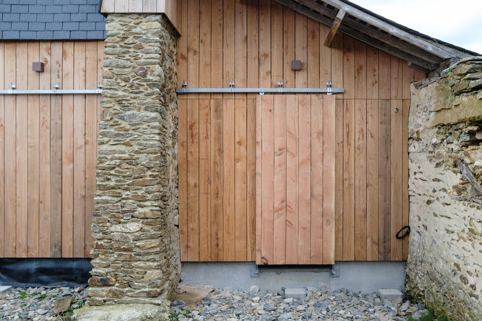 Le projet est réalisé en collaboration avec la Fondation du Patrimoine. Il conserve donc les marqueurs architecturaux d’origine et propres au patrimoine bâti local : gouttières lavalloises, pierre argelette, ormeaux en ardoises. Les murs en pierre sont restaurés, la couverture en ardoises naturelles est reprise, tout comme la lucarne et les menuiseries en bois reprendront le même dessin que celles existantes. La partie de la construction qui était à l'état de ruine est restaurée et pérennisée dans cet état.