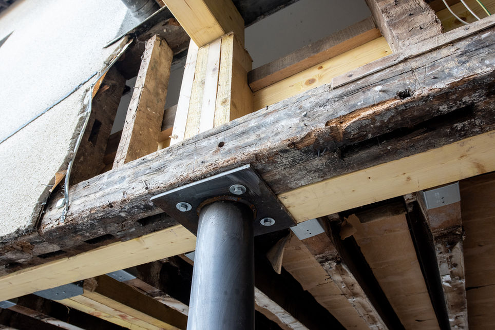 L'analyse des structures existantes (murs à pans de bois et murs maçonnés) a permis la mise en oeuvre de reprises structurelles importantes et justement dimensionnées. Ces dernières offrent des ouvertures généreuses et des opportunités nouvelles d'aménagement des espaces.
